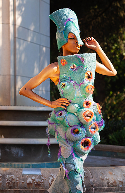 Image: Adé A Cônnére wearing a garment by Jordan Christianson and Anouk Rawkson; Photo by Debora Spencer. Hero image: Vivian Lake wearing a garment by Jordan Christianson; Photo by Debora Spencer.