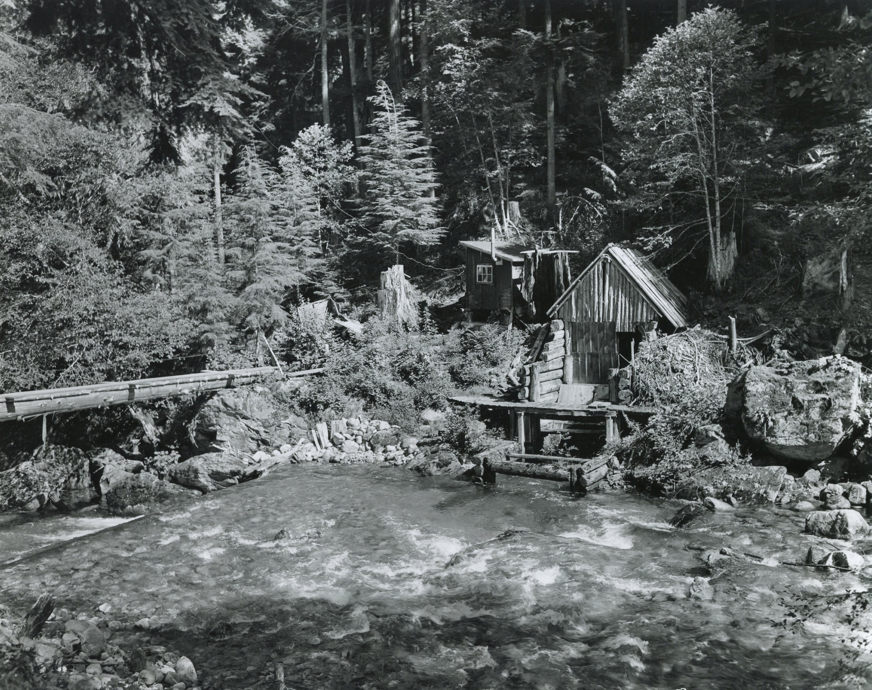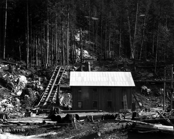 The Newhalem Creek Hydroelectric Project is a small, run-of-the-river hydroelectric facility in the Cascade Mountains of northern Washington state. The dam is on Newhalem Creek, one mile above the confluence with the Skagit River, and just above a 100-foot waterfall. When operational, the dam hydroelectric project generates 2.125 megawatts of power. Constructed in 1921 by the City of Seattle’s Lighting Department (as Seattle City Light was called at the time), it was the first hydroelectric facility in the Skagit River area.