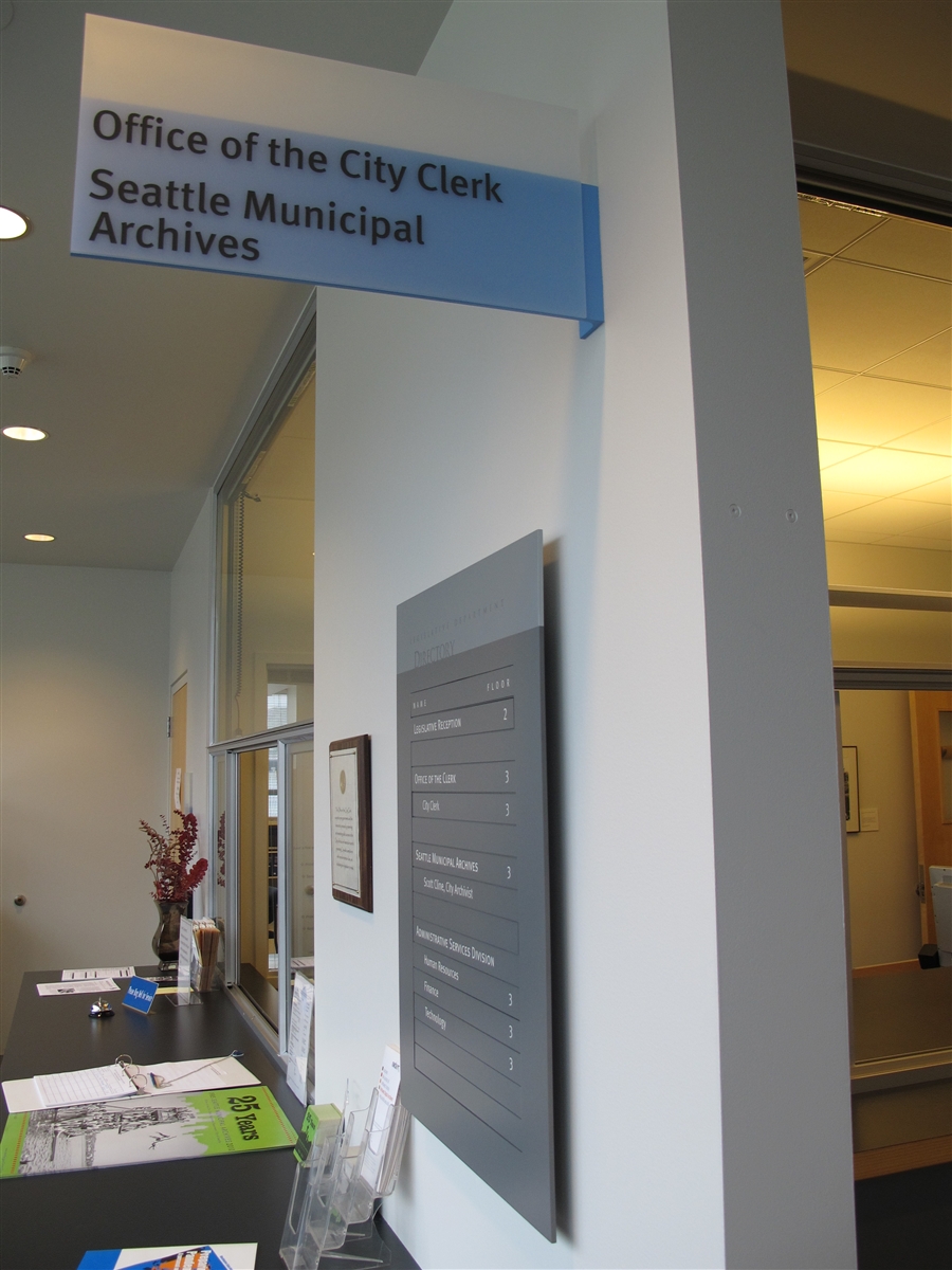 Location: SMA is located on the third floor of Seattle's City Hall at 600 Fourth Avenue in downtown Seattle. The building is between Fourth and Fifth Avenues and James and Cherry Streets, and the building's main entrance is on Fifth Avenue. The Archives is co-located with the Office of the City Clerk.