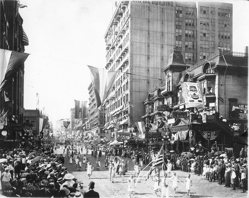 Seattle has always found occasions to celebrate: announcing to the world its progress as a city in the 1909 Alaska-Yukon Pacific Exposition and 1962 World's Fair, commemorating holidays and patriotic events, dedicating public works and monuments, and otherwise expressing community pride.