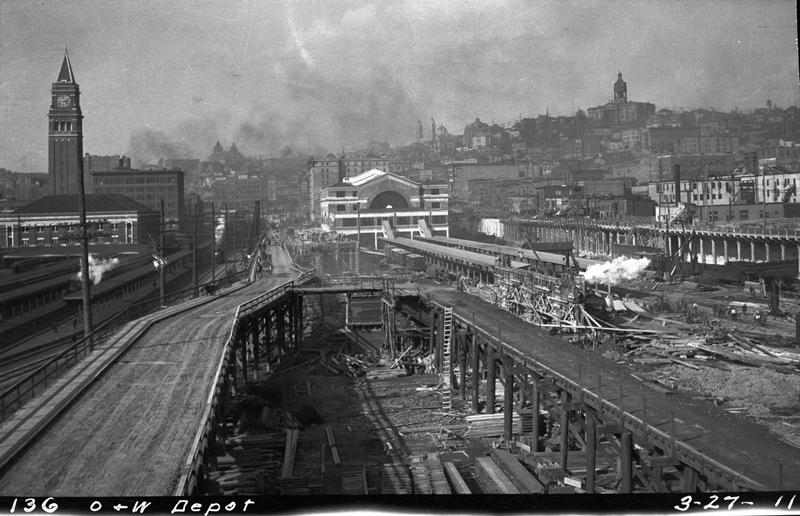 The history of Seattle city government parallels Seattle's greater history. Sometimes, as with the regrading of downtown, the City created history itself. In other cases, the City reacted to an era's events and challenges, whether by encouraging or celebrating growth in good times, or responding to the consequences of harder times such as wars, depressions, natural disasters, and social upheaval. Although City photographers rarely set out to capture these greater themes in their routine documentation of City work, the resulting pictures often provide glimpses into Seattle's broader history.