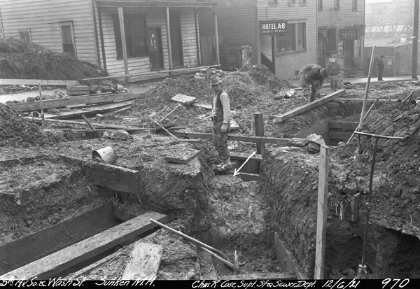 Prior to 1890, Seattle relied on a haphazard assortment of sewers and cesspools that, at best, drained into surrounding lakes and salt water. Faced with recurring threats of waterborne diseases including typhoid and cholera, City Engineer Benezette Williams designed the Seattle's first centralized combined sewage system plan in 1891. This plan sought to remove as much city sewage as possible into the salt water of Elliott Bay and the Puget Sound with more limited drainage into the fresh water of Lake Washington. Although originally untreated, the City undertook a succession of steps starting in the late 1910's to remove solids, begin primary sewage treatment, and eventually separate storm water from raw sewage. Metropolitan King County took over the City's wastewater treatment responsibilities in the 1960's, but Seattle continues to manage its network of storm sewers.