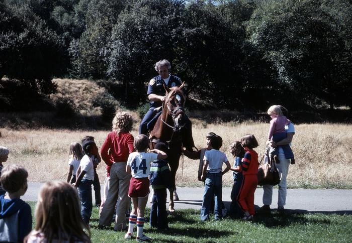 Beginning in 1977, Nature Day Camps were offered for kids aged 6 to 11. Billed as “The place Mother Nature could send her children”, campers explored the meadows, forests, and beaches of the park and took trips to the lighthouse. Campers visited the stables to see how the mounted police trained their horses. Children visited the Daybreak Star Indian Cultural Center to view murals and engage in art projects. The Nature Day Camp programs also brought hands-on learning to small children, with activities including producing plays, using seasonal props, topical games, and allowing children to participate in gathering specimens.