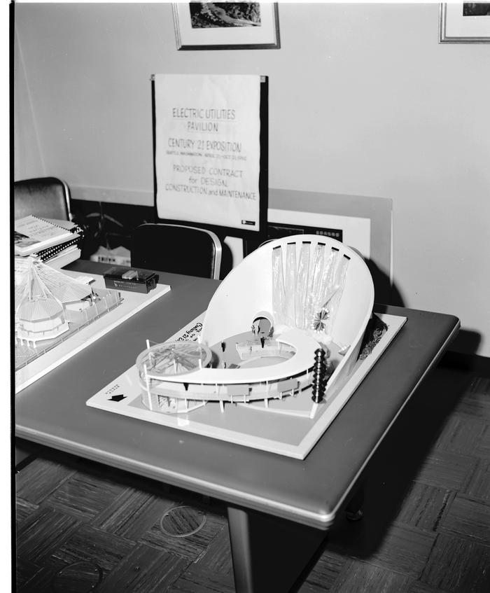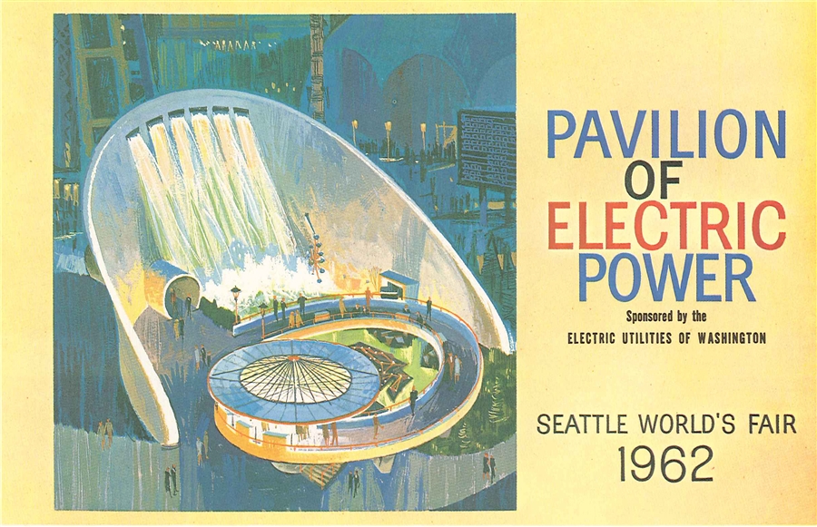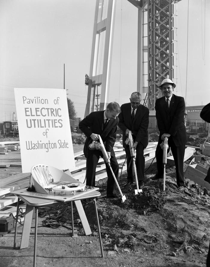 SCL developed the Pavilion of Electric Power exhibit featuring a 40-foot-tall depiction of a hydroelectric dam. Located near the foot of the Space Needle, the Pavilion also featured a relief map illustrating sources of electricity in Washington State. A model had been built by July 1961, groundbreaking took place on November 9, 1961, and construction was underway by the end of 1961.