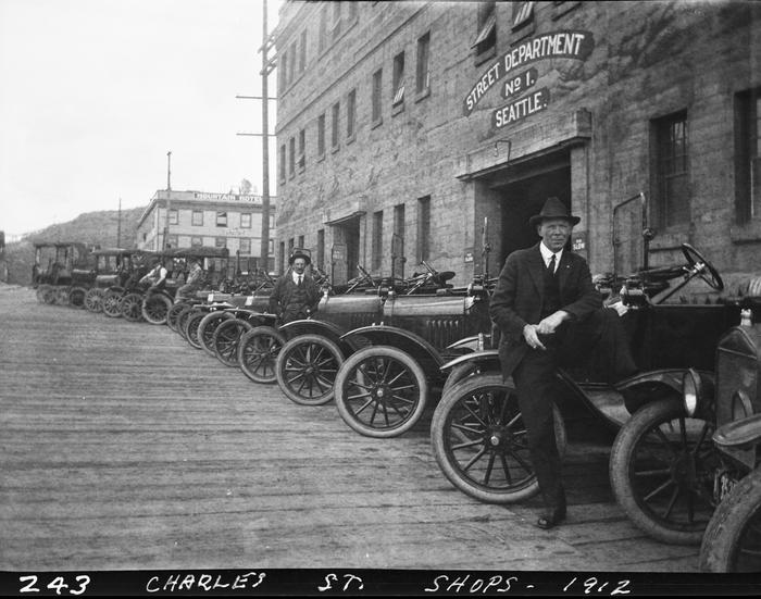 The first automobile drove through Seattle in the summer of 1900. By the 1920s, cars were plentiful in the city and numbers were growing fast. In 1924, the city installed its first traffic light on a trial basis at what is now Fourth Avenue South and South Jackson Street in an effort to prevent rush-hour gridlock and traffic accidents.