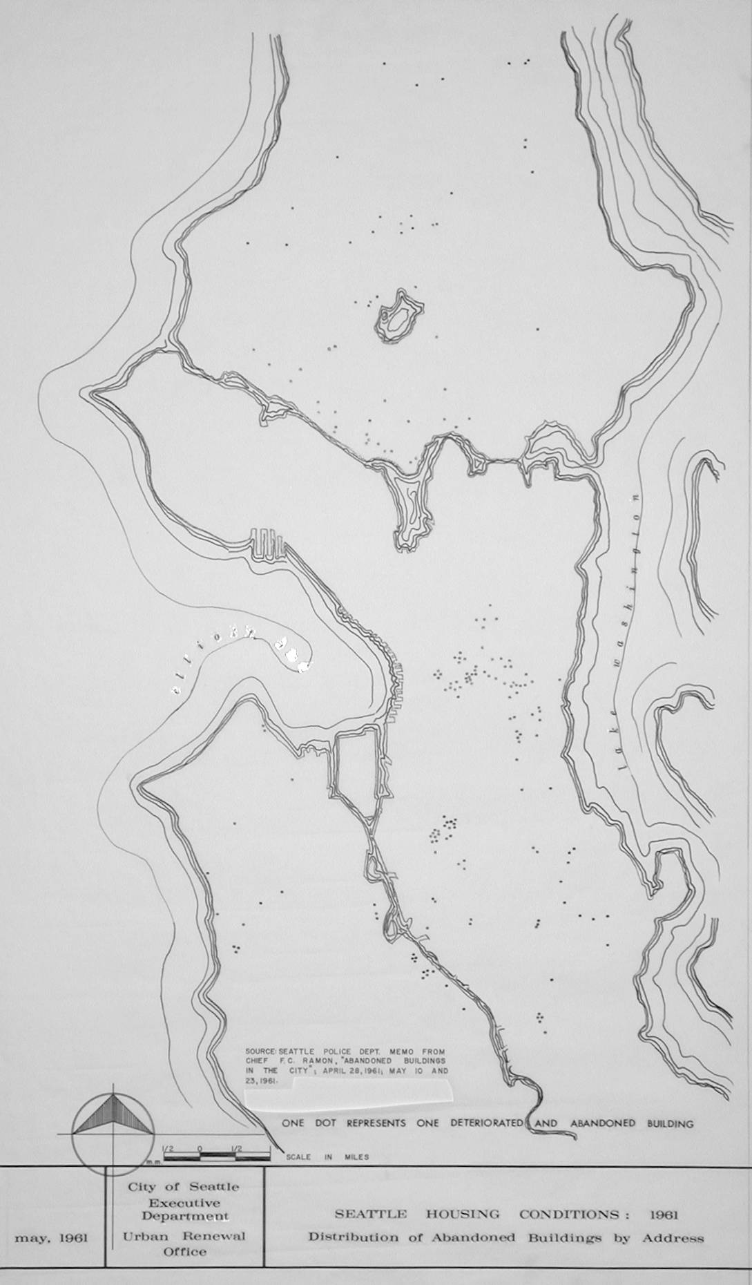 Seattle Housing Conditions map, showing distribution of abandoned buildings by address, 1960