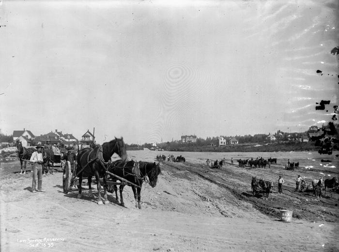 Sourced from the Cedar River pipeline in the Cascade Mountains, Lincoln Reservoir in Cal Anderson Park served Seattle with 21 million gallons and the city's first hydraulic pump station. Purchased by the City in 1897 from John Nagle, construction of the reservoir began in 1899. Digital Collections includes images, maps, moving images, and textual records from the 1890s through 2010s of Lincoln Park Reservoir and the development of what would become Cal Anderson Park.