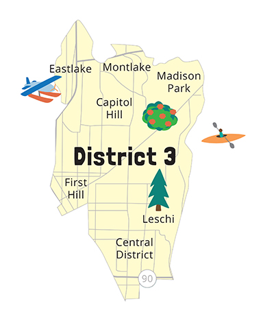Listed here is a small selection of records in the Seattle Municipal Archives relating to neighborhoods in District 3, including Capitol Hill, Eastlake, Central Area, First Hill, Leschi, Madison Park, and Montlake. Many more historical resources are available; please contact an archivist for assistance.