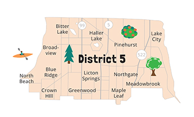Much of the area in District 5 was annexed to the City of Seattle between 1942 and 1954. SMA holds records relating to these annexations, including petitions, maps, correspondence, and more. Explore our interactive annexation map to learn when specific areas became part of Seattle.