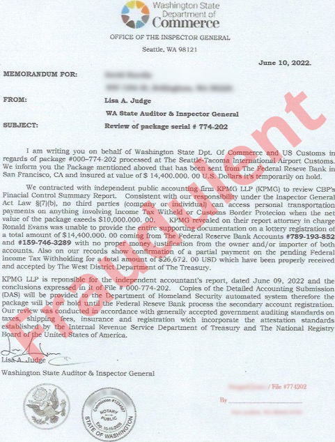 July 13, 2022 - OIG has been made aware of a fraudulent letter purporting to be from “Lisa A. Judge, Washington State Auditor and Inspector General”. That office does not exist and the letter misrepresents Seattle Inspector General Lisa Judge. A sample of the letter can be found here. This is not a legitimate correspondence from the City of Seattle Inspector General. If you have information about this matter or receive communication of this sort, please feel free to reach out to OIG, and to contact the Washington State Office of the Attorney General and/or the FBI to make a report.