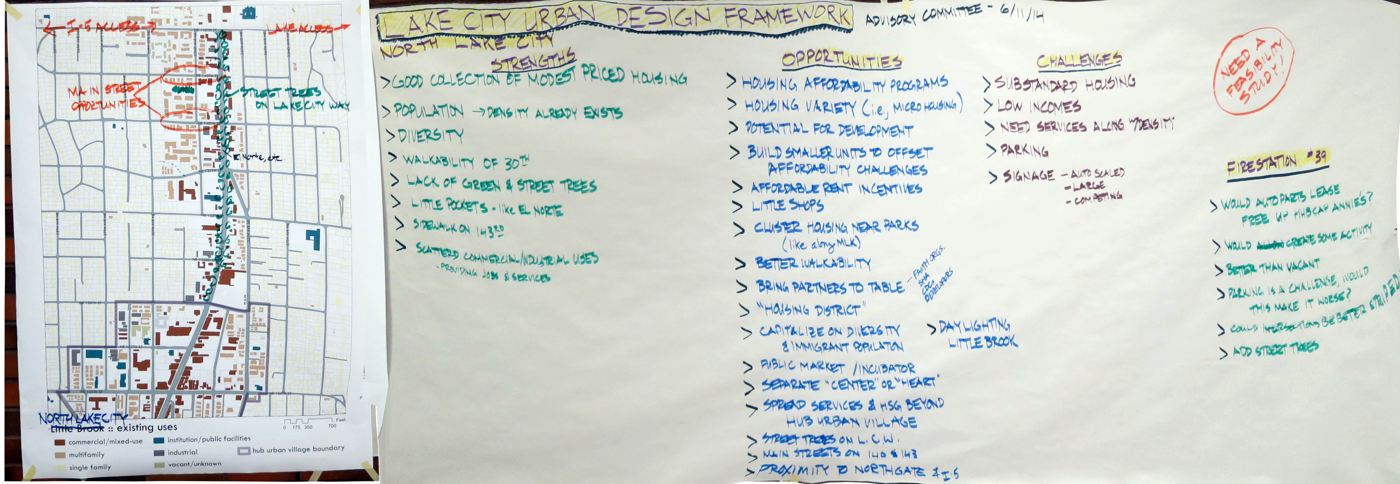 Confirm general character (residential, retail) of streets and edges in the hub urban village; discuss strengths, challenges, and opportunities in and around Little Brook; discuss proposed FS39 lease: June 2014