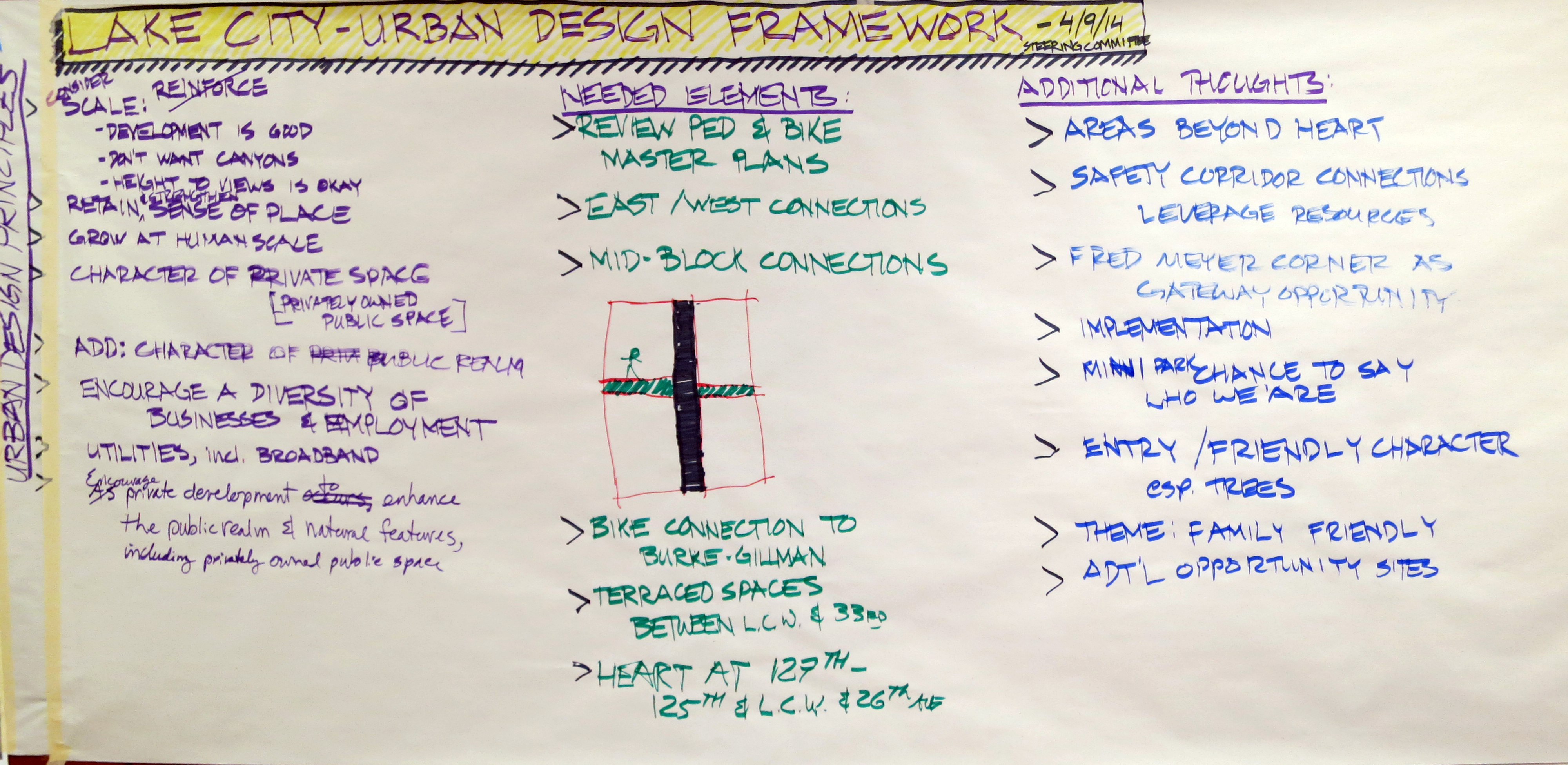 Continued discussion about project principles and "downtown" Lake City: