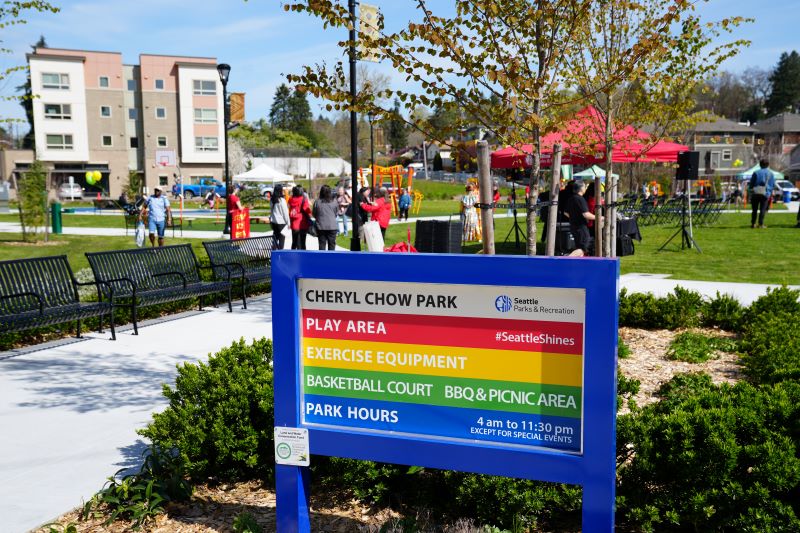 The park is named after the late Seattle Councilmember Cheryl Chow, whose life and career were dedicated to public service. As a long-time Councilmember, Chow devoted her life to serving the people of Seattle, particularly those in marginalized communities.