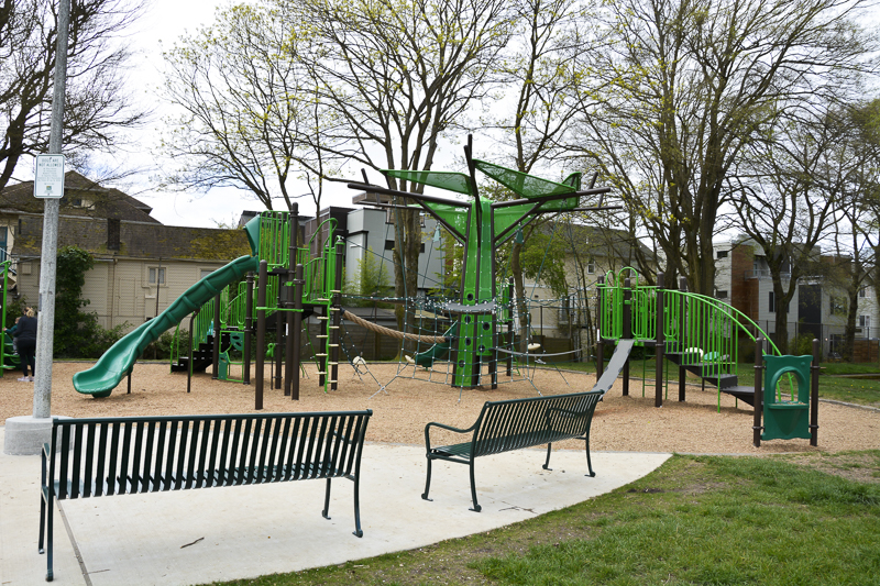 Gilman Playground's features include ballfields, tennis courts, a play area, and wading pool.