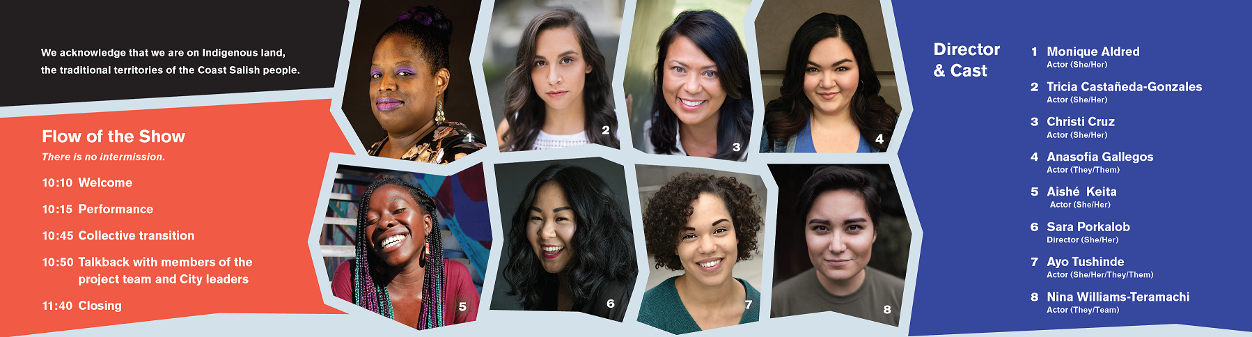 - An original performance written and directed by playwright Sara Porkalob, based on stories from BIPOC women in the City of Seattle workforce. Performed live in 2019.