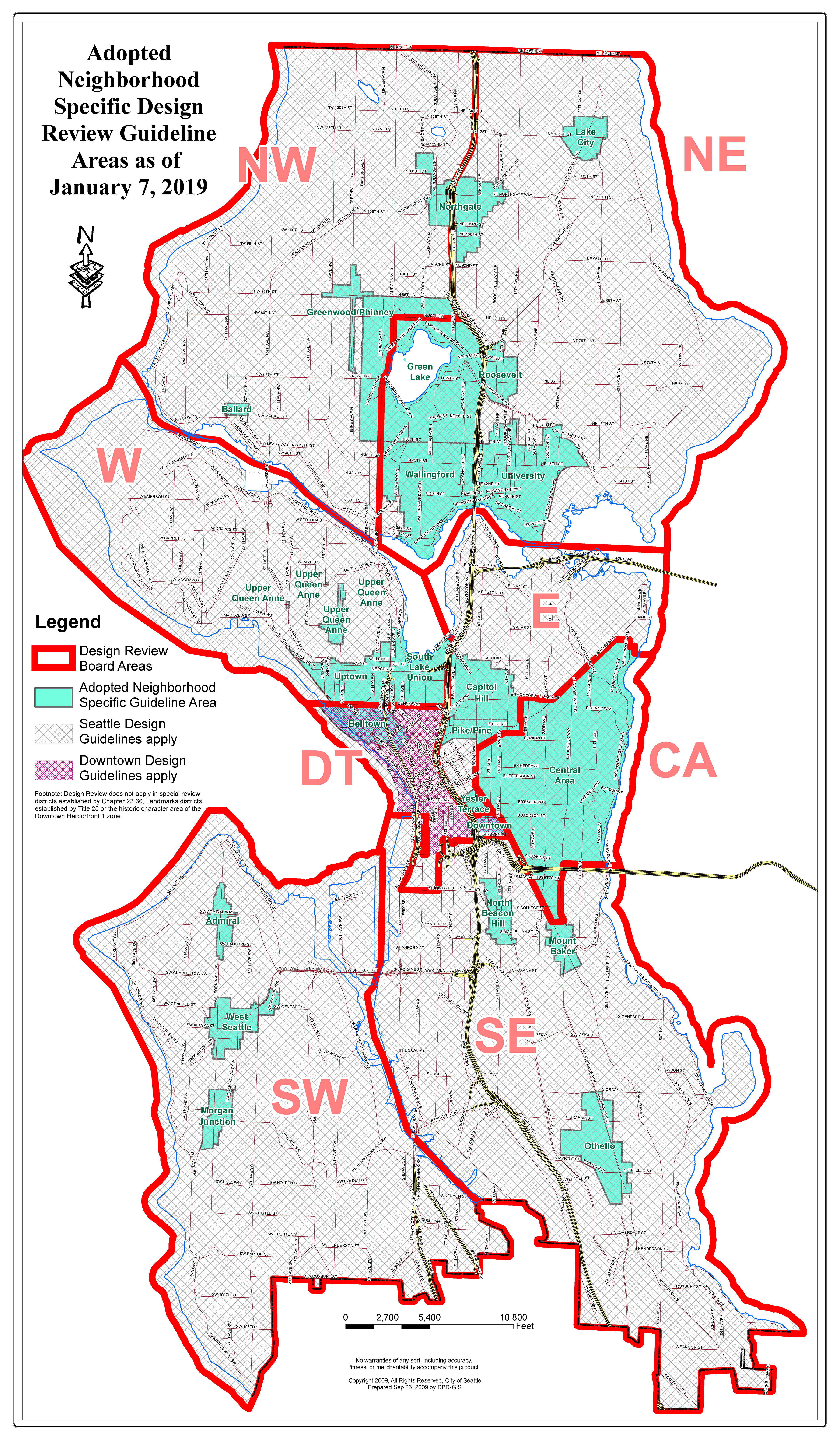 Our design guidelines are the backbone of the Design Review Program. They direct designers and project reviewers to look closely at the neighborhood and its character to design new buildings that enhance their surroundings. The guidelines are used by the Design Review Boards and our staff to assess the merits of a project.