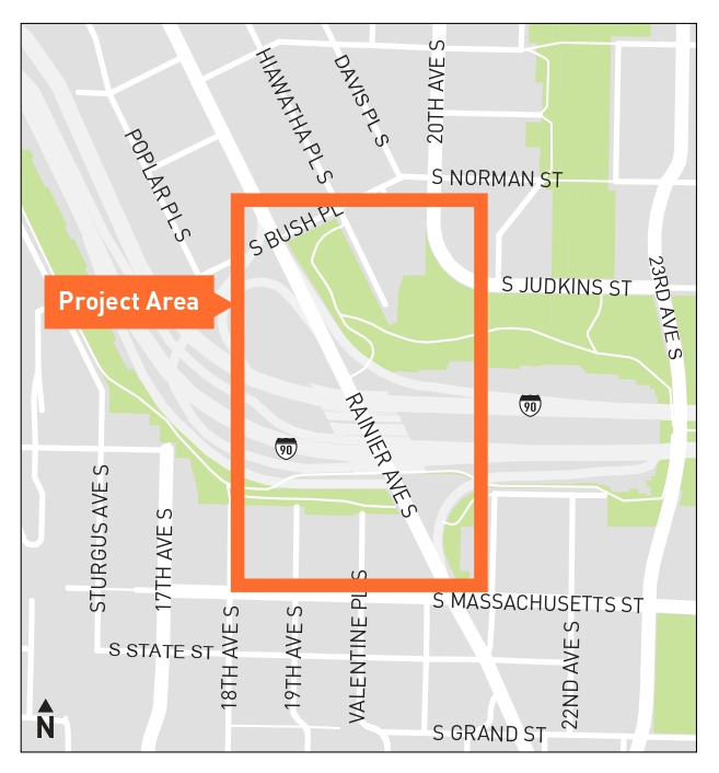 Washington State Department of Transportation (WSDOT) is leading work on the I-90/Judkins Park Station—Reconnecting Communities study, which is focused on a long-term reconfiguration of the I-90 ramps along Rainier Ave S. However, this work will take longer to complete, so we are also working with them on near-term crossing improvements.