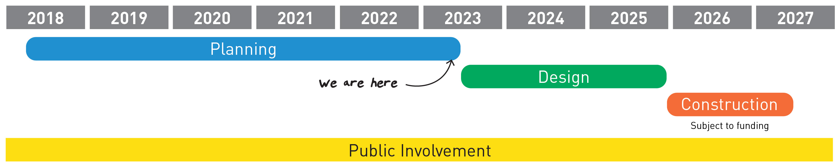 We are currently in the early design phase of this project where we refine our plans and cost estimates as well as continue to gather feedback from stakeholders, business owners and members of the community. As we gather input, we will continue to adapt plans and concepts to represent community-informed designs moving forward.