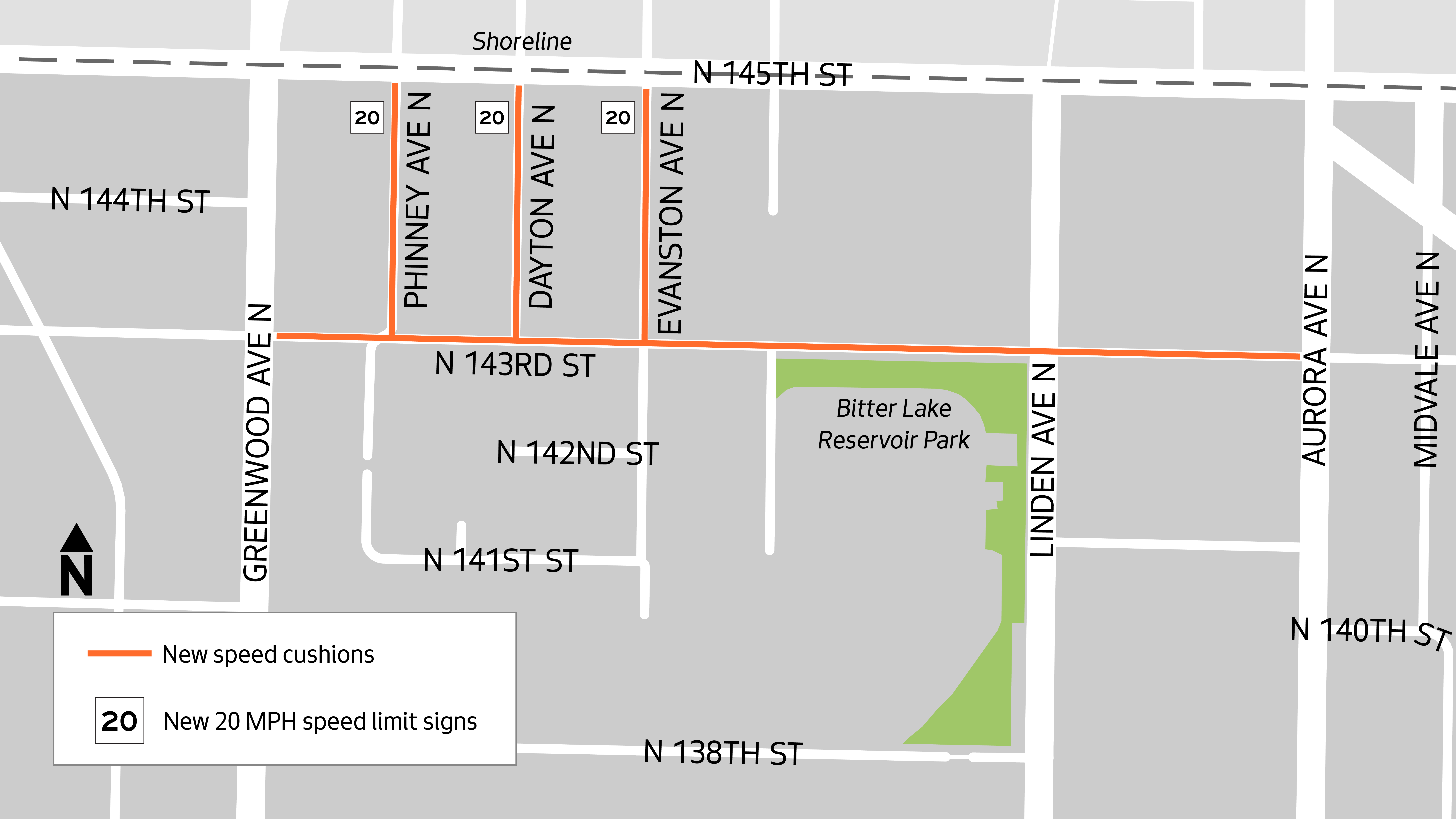 - N 143rd St from Greenwood Ave N to Aurora Ave N