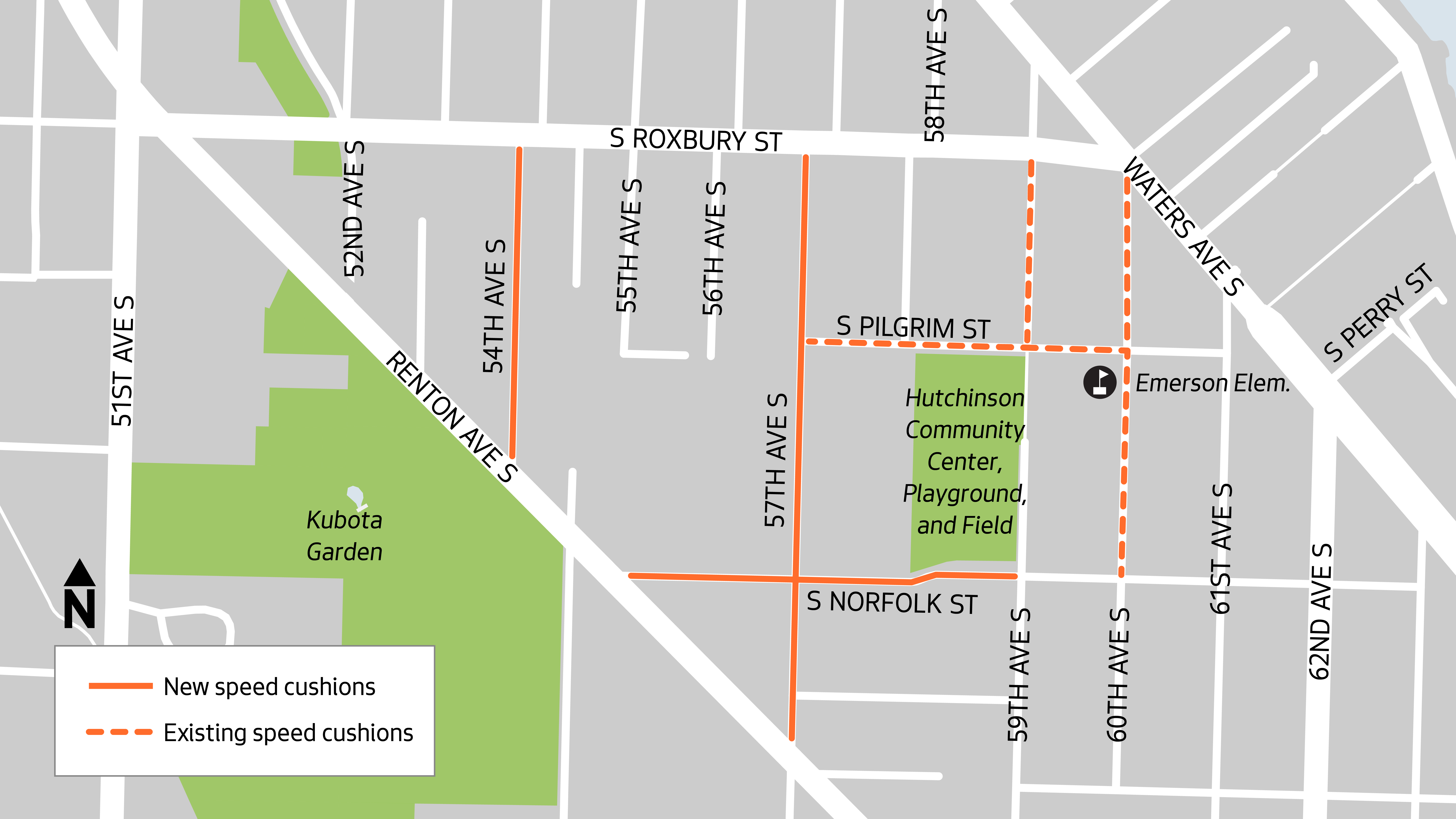 - 54th Ave S from Renton Ave S to S Roxbury St