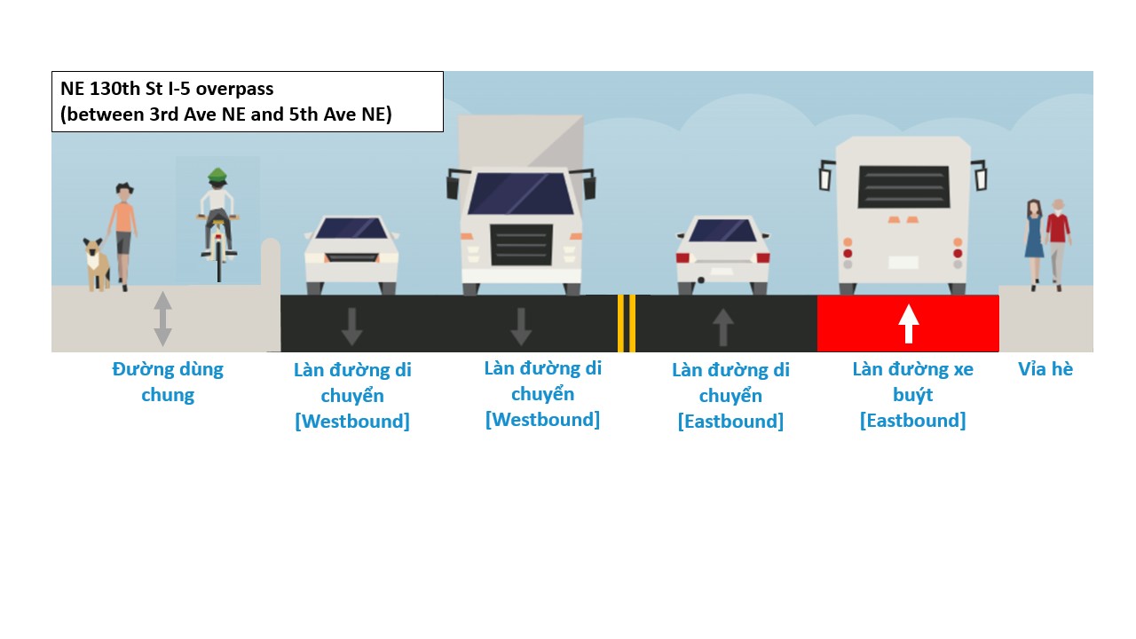 1 làn đường duy nhất dành cho xe buýt giữa đoạn đường nối I-5 đi về hướng nam và đường 5th Ave NE để phục vụ điểm dừng xe buýt theo kế hoạch ở góc tây nam của đường NE 130th St và 5th Ave NE