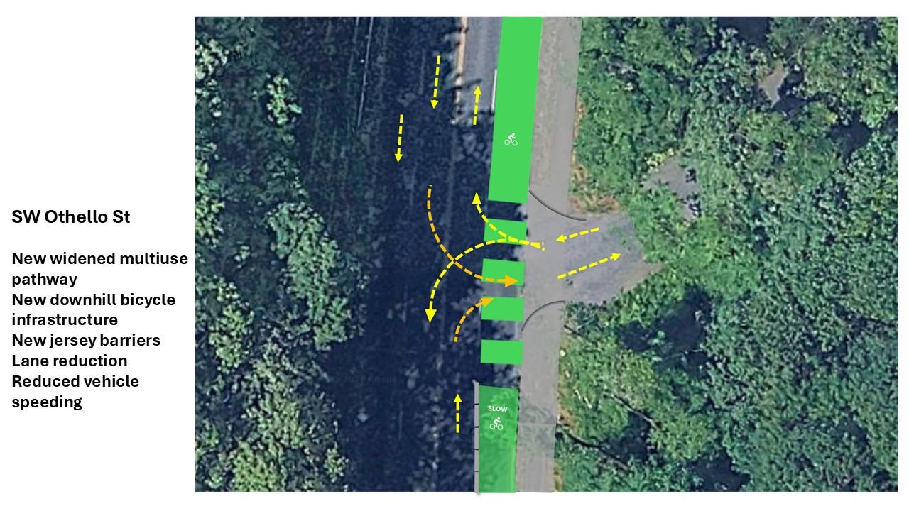 - Local Access: Residents on side streets, particularly SW Othello St, shared concerns about the difficulty of turning onto Highland Park Way as traffic is consolidated into fewer lanes.