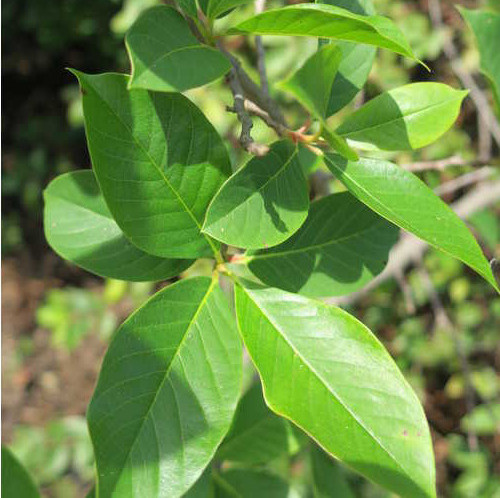 Leaves: Glossy green leaves turn brilliant shades of red in fall.